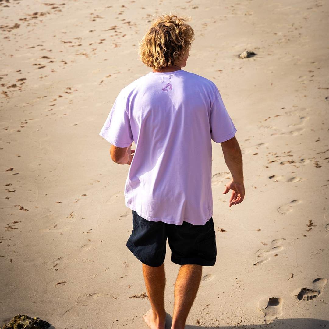 Our new Reedin space lavender logo t-shirt featuring a high-density logo print.