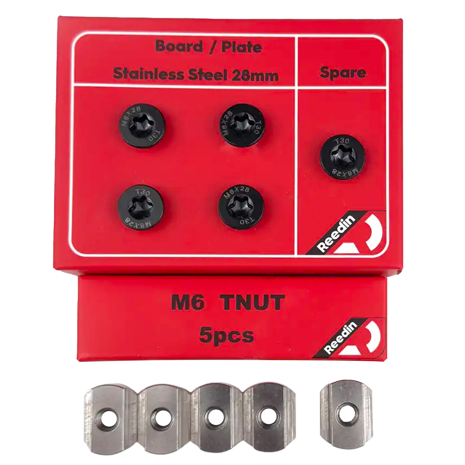 Order your Reedin T-Nut set in case you have lost them, or in case you want to keep a spare set on a long trip. This set includes 4 T-Nuts and 4 screws + one spare.